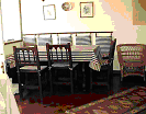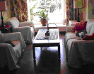 möbliert mit einer Polstermöbel- und einer Esstisch-Garnitur.